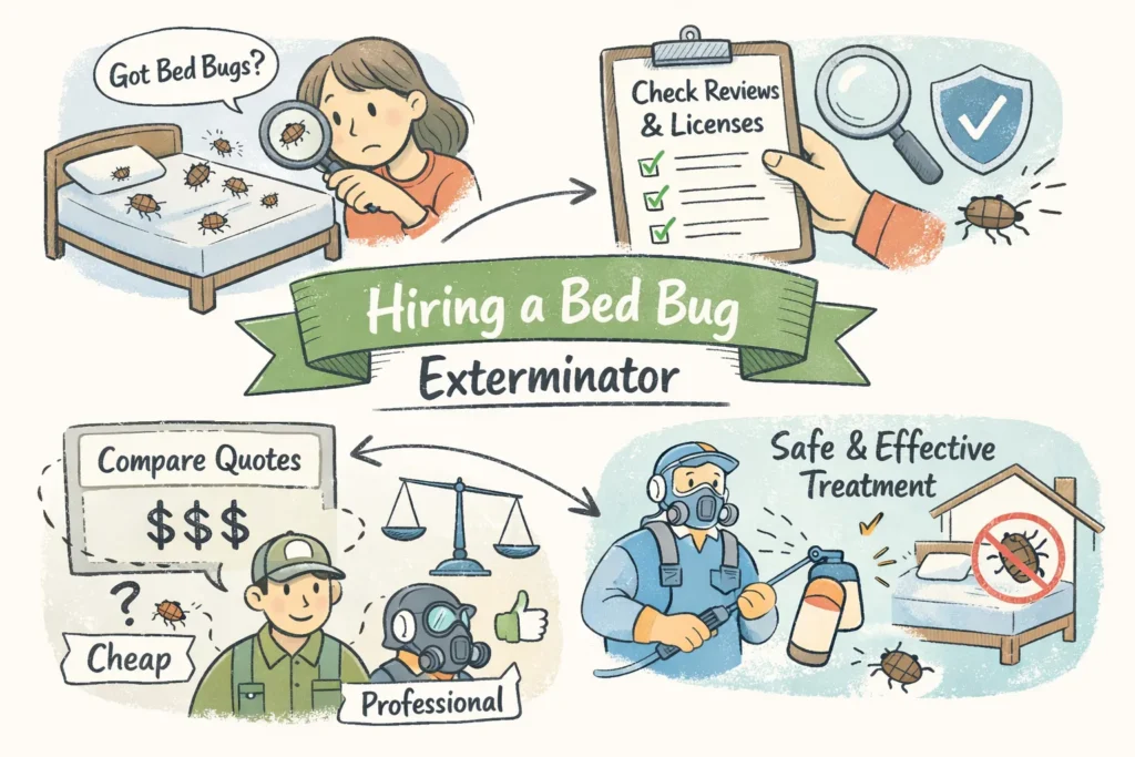 How to compare quotes: insist on an itemized bid that lists number of visits, materials included, inspection type (visual or K9), and the exact warranty terms. Prefer whole‑unit flat pricing for bed bugs rather than vague per‑room math that hides trips. Payment rules: don’t hand over full payment up front; use a traceable method (card) and confirm refund/cancellation terms.